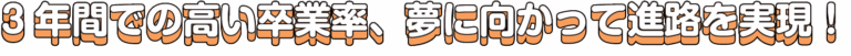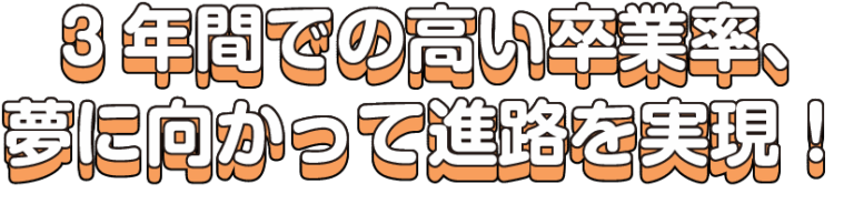 一人ひとりに寄り添った学習支援によって、多くの生徒が3年間で計画的に卒業しています。また、将来の夢や目標に向けて大学・短大・専門学校進学や就職など、希望する進路の実現を果たしています。