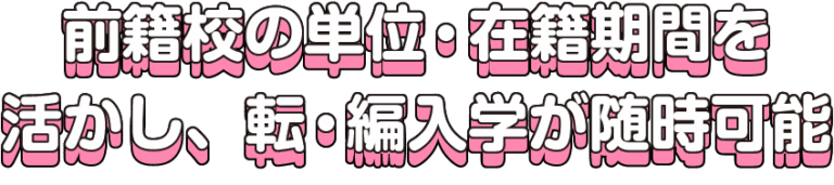 現在、高校に在籍している生徒が別の新たな高校に移ること。転入学は「随時入学可」という通信制高校(私立・広域)が多い。