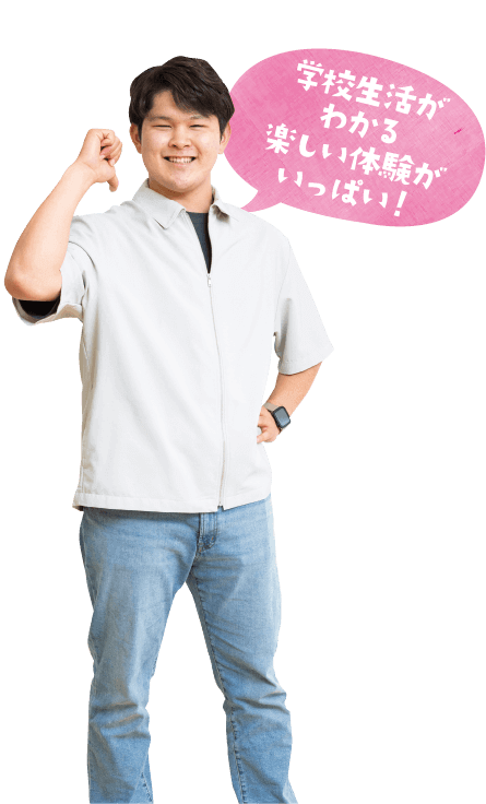 事前に選択いただいた授業や部活動を体験できます。見学でも構いません。見学のみでも参加可能で、保護者様も一緒に参加いただけます。