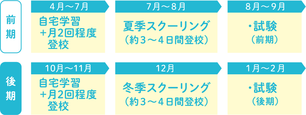 月2回登校+夏・冬集中スクーリング