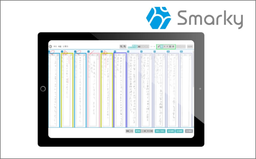 「Smarky」を導入し、レポートを電子化しています。タブレット・ノートPCでレポート学習を行いWeb上で提出採点返却を行うため、レスポンスの早いやり取りが可能です。